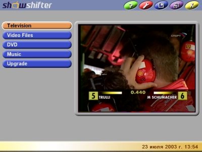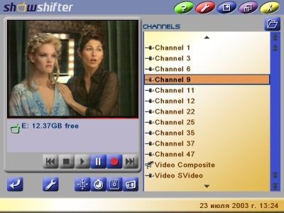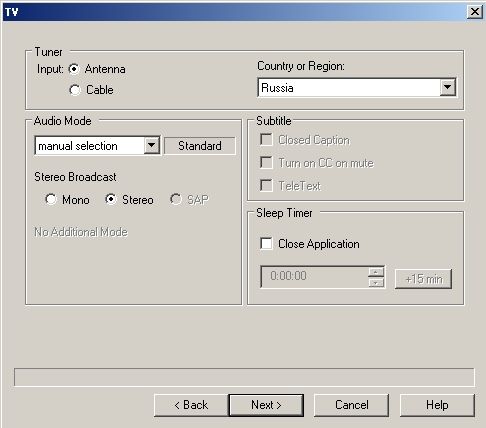 ConnectionThe connection is typical of most internal TV tuners. ![]() I hope the production model will have an audio connector soldered out as it will let us get rid of one cable on the PC case backside. Installation & TuningWhen I fed the disc to the drive I was sure that it had a disordered heap of drivers and software with manual installation required. But I was wrong. The unpresentable appearance of the CD-R confused me. ![]() What does this nice disc shell offer? ECS chose an easy way by using software from third manufacturers. This is a packet from InterVideo. I little digression. Software coming with video cards, tuners or mainboards usually have a last but one or even earlier version compared to what's available on developers' sites. Is that because older versions are cheaper? Or they are afraid that latest versions would leak away? Whatever the reason, I think that it's not fair regarding end-users. So, here is what we get after the installation is completed ![]() Now a little on the software supplied. The programs can have icons on the desktop or can be started up through the EZ-TV Remote Control icon in the tray. ![]() DVR (Digital Video Recorder) is actually meant for recording and playing TV programs. This is the version 2.0. But the site offers v3.0 (the difference is mostly in the interface and in the support of frame capture in *.jpeg (in addition to *.bmp)). InterVideo WinDVD ![]() DVD player v4.0. Its audio features are pretty poor. At their site you can find v5.0 with a lot of changes. InterVideo WinDVD Creator ![]() This is a program for creation and recording of DVD/SVCD/VCD media. This is v1.0; v2.0 is available on the site. InterVideo WinRIP ![]() This is an audio player/recorder. Version 2.0 both here and on the site, but mp3 recording is unfortunately unsupported (only wav is available). One of the tuner's strong points is that the RC supports Voice Help. If you want to use it you should install Microsoft Speech SDK 5.1 (but it can be done later as well). ![]() Another advantage is that ECS lets users choose the RC management means. The Bonus Software includes a ShowShifter program working as a normal multimedia center with a completely compatible remote control. ![]() ![]() Here you can find v2.10 (the tuner comes with v1.55). Moreover, it doesn't have deinterlacing support, that is why you'd better not use it to spare your eyes. ![]() In all other respects, this is a nice program with a funny interface looking like the Lego system:-). Now, when the installation is completed, let's see how it works. In the WinDVR window ![]() choose SECAM_D and TV, in the next window select Antenna (or Cable, depending on the input type) and country (in our case it's Russia) ![]() and press Autoscan ![]() Two minutes later we get all channels available in our region. That is why the tuner gets A for sensitivity since it's the first tuner (including tuners of TV sets and VCRs) that confidently receives one of our channels. ![]() No problems with Cyrillic symbols. Mind the Mute non-favorite channels function. I advise that you tick it off and check the whole list to exclude noise and pickups. WinDVR.chan with the data on channels is stored in Documents and Settings\All Users\ApplicationData\InterVideo\WinDVR. When I finished all these operations the screen turned black and soundless in the playback mode. But after rebooting everything got right. In other programs like ShowShifter, FlyDS or iuVCR such effect didn't take place. The tuner has excellent screening. The card was tucked between the video card and modem but it didn't affect the image quality. QualityHere the EZ-TV performs well (thanks to its nice filling). ![]() ![]() ![]() ![]() Additional featuresI couldn't get Timeshifting work. Well, actually it works but when we stop recording or simply try to close the WinDVR the PC reboots. I tried to change settings in the record buffer, ![]() change the power supply management mode from S3 to S1 in the BIOS and install WinDVR 3.0 instead of 2.0, but it didn't help. Other programs that I know don't support this function, that is why I couldn't test it. Maybe this is a peculiarity of my system, and other PCs can have it all right. Channel Surfing works well. ![]() ![]() has one strong point - when you close the stills gallery the stills remain there and the next one is added to them. ATI's All-In-Wonder has a similar feature called Stills Gallery, but when I accidentally closed it, the stills captured disappeared. Schedule looks standard (it's actually difficult to think out something new here) ![]() CaptureAlthough it's the epoch of DivX, WinDVR offers only MPEG-1 and MPEG-2 in various modes ![]() with profile editing supported, ![]() but it fully complies with the specs. On the other hand, any program supporting MPEG4 capture, excellently copes with it (we checked it with FlyDS and iuVCR). FM tunerProbably, InterVideo has no software for FM tuner management, and Elitgroup had to develop it itself :) The channel scanning carried out with the full forward and rewind buttons is somewhat tiring especially because you have to manually type in stations found. ![]() There is a good help program looking like a pseudo calculator for direct input of frequencies. ![]() The sensitivity is good, all stations of our frequency range were found. But there are only 10 cells!, that is why if you have more stations in your frequency range, you have to make a choice. Press Setup to bring the channels table to the display. To edit them wait a little before clicking the left mouse button again. ![]() Also, there is a list of recorded files ![]() You can record only in *.wav, - mp3 is not supported again. Also, there are no schedulers, recording is entirely manual. ![]()