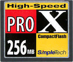 A strong point of SimpleTech's cards is a life warranty, but the speed is usually moderate. The Pro X series was released for more demanding users. Today we have a couple of cards of this line - 256 MB and 1 GB. The card package is changed a little - now it says that the write speed reaches 4 MB/s. We will check it in the tests.
