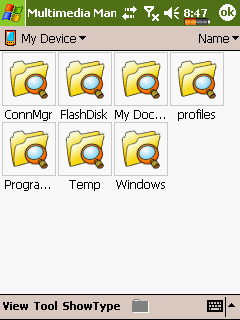 ![]() The camera allows taking photos with/without a built-in LED flash. Available resolutions: 1280x960, 640x480, 320x240, or 176x144. The following image formats are supported: BMP or JPG. You can select a white balance mode (auto, tungsten, fluorescent, daylight, cloudy, night), use self-timer, or shoot several photos in succession. On the whole it offers basic shooting features, the only unusual option is to save photos in BMP format. The camera shoots photos with saturated colors (which is also unusual of built-in cameras). However, it has a significant drawback – relatively long exposure times. It means that photos will be blurred or noisy, if you shoot under unideal conditions. The camera allows recording video as well, but its format *.bt1 requires special programs for playback. ![]() ImageMaker is a simple graphics editor with basic operations – erasing and filling image parts, drawing simple geometric figures, adding font elements. ![]() Image Wizard allows to apply artistic frames, filters, inscriptions, etc to your photos. It's hard to tell how useful it really is, but sometimes it's entertaining. ![]() Multimedia Manager is an alternative file browser, specializing in searching and displaying multimedia files. Its advantage is in simple GUI, which is more convenient than the standard File Explorer. But it has a disadvantage - it displays simultaneously files only of a single type – audio, image, or video: for example, if you choose the Video option in a folder with images, you will see no files. ![]() Phone. This group contains utilities for managing SMS, MMS, SIM memory, and SIM menu, speed dialing, and wireless data transfer. There is an unusual Call Filter utility, which allows to create a black list of phone numbers, which you don't want to hear. ![]()