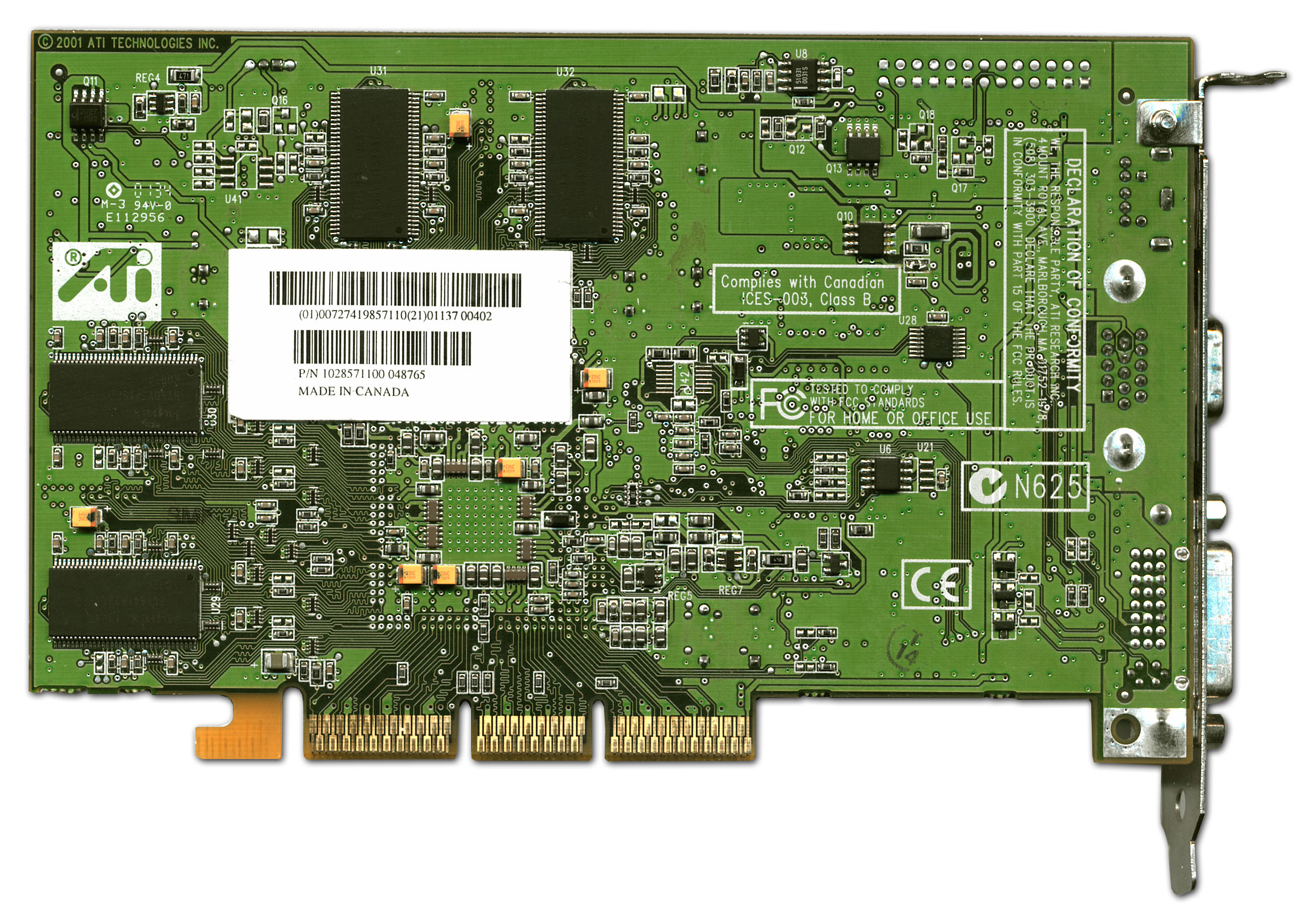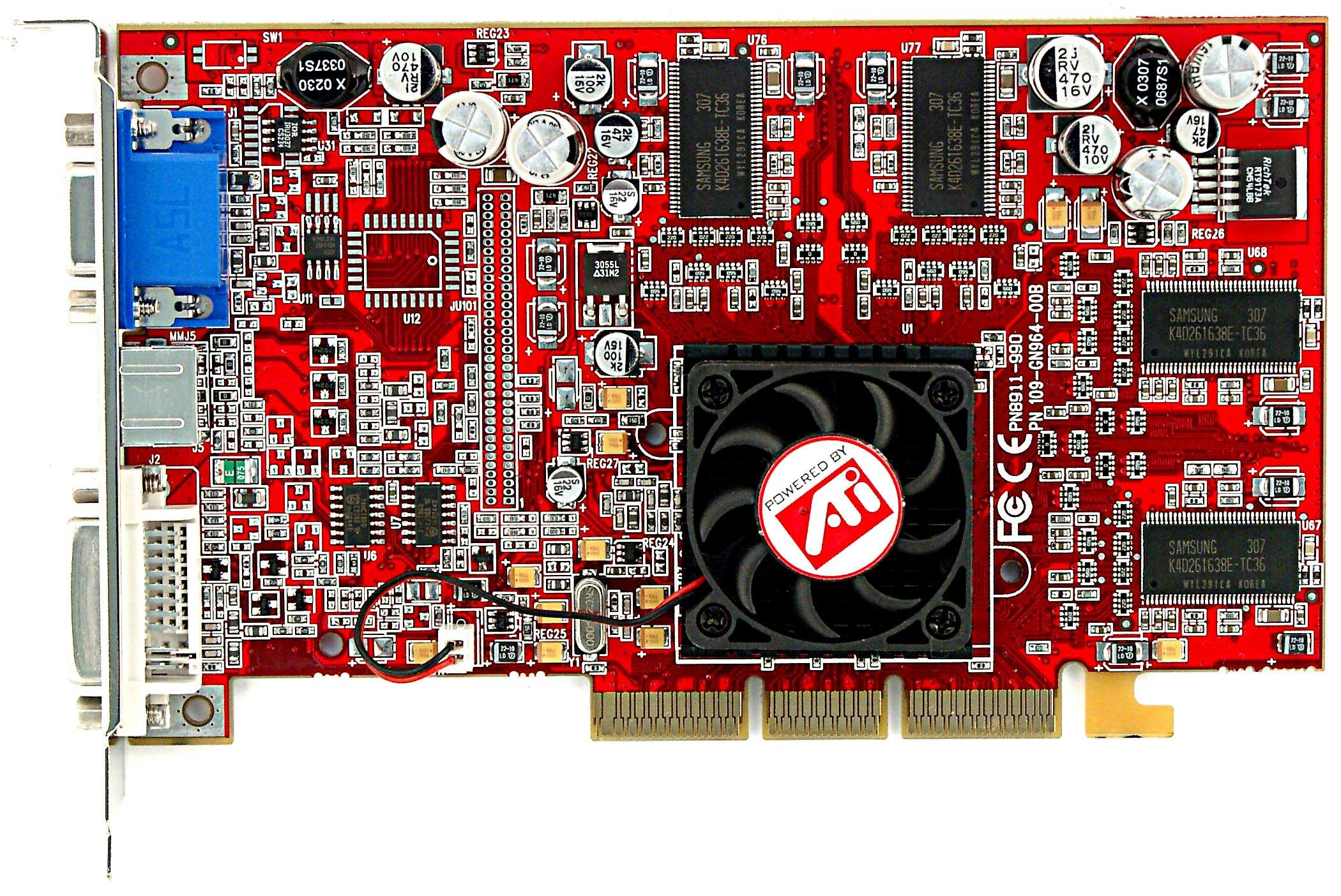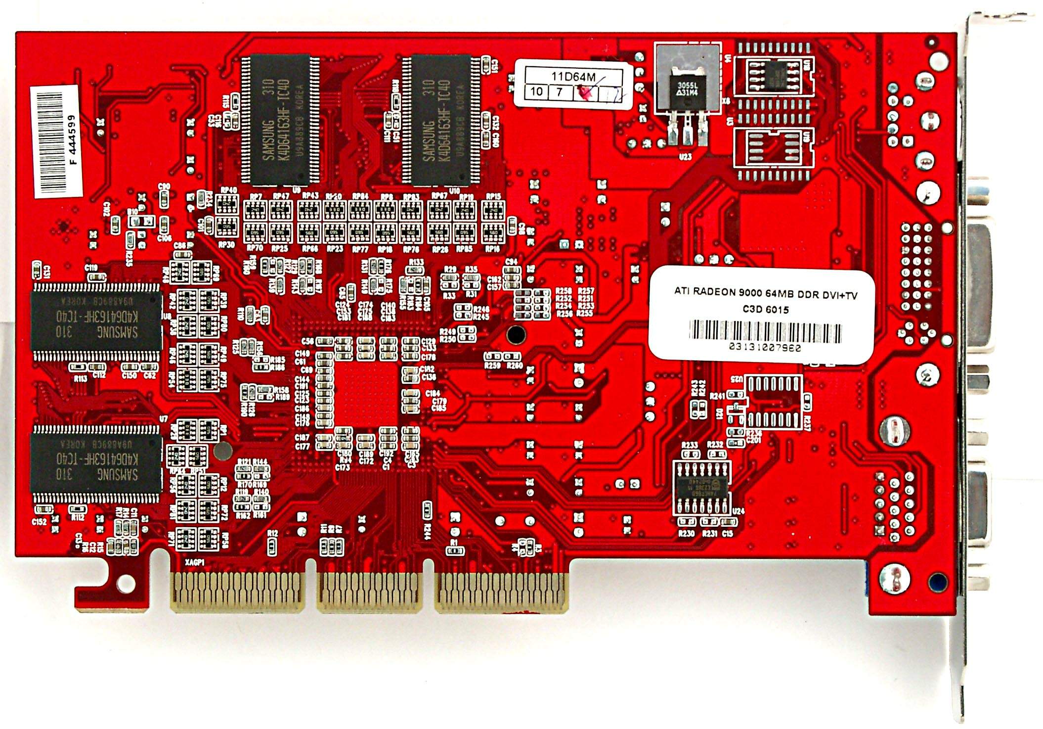 | The card has AGP 2x/4x interface, 64 MB DDR SDRAM in 8 chips on both