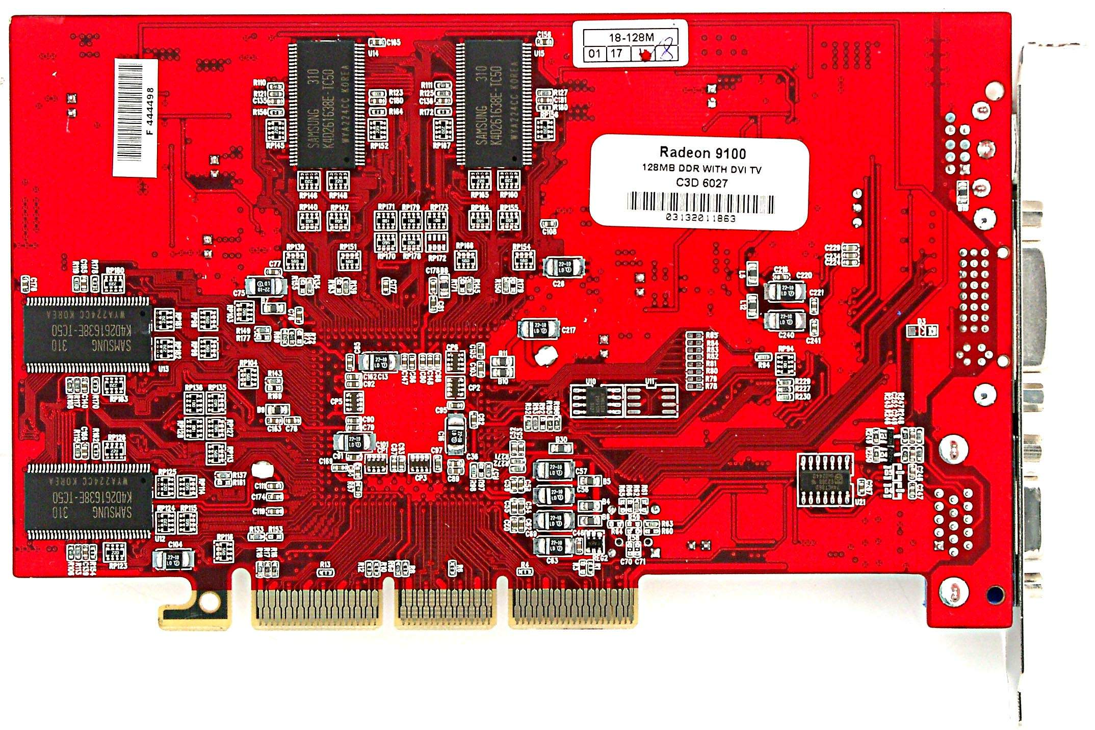 | The card has AGP 2x/4x interface, 128MB DDR SDRAM in 8 chips on both