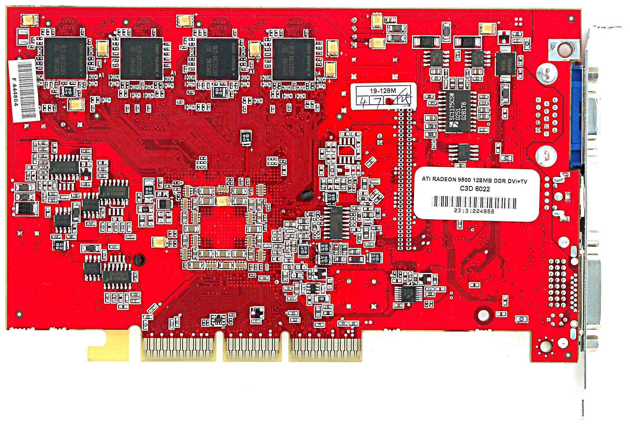 | The card has AGP x2/x4/x8 interface, 128MB DDR SDRAM in 8 chips on