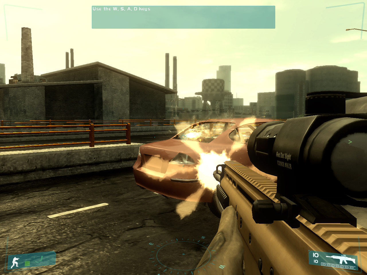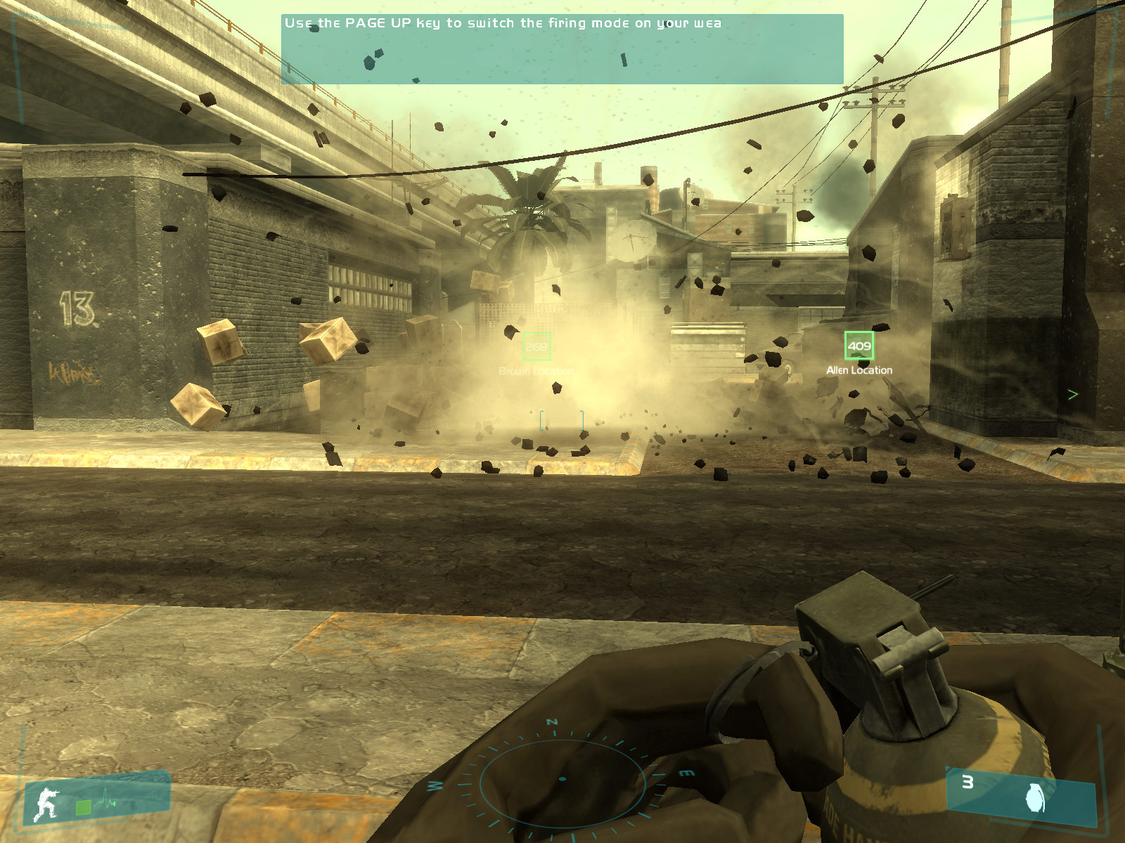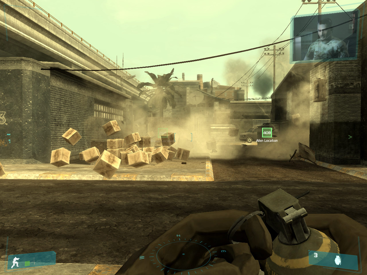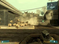 The game does not have a benchmark, so we cannot find out how advanced hardware physics impacts the game performance. But on the whole, PPU affects little the GRAW effects: sparks look better, explosions are more colorful, but is it worth $300 for ASUS PhysX P1? It's not worth it, in our opinion. We should also mention a nasty effect (you can see it in the grenade explosion video at the link above): when you use PPU, all small shards that fly from an explosion epicenter disappear in the air as soon as the explosion is over. Strange, isn't it? We'll get back to this fact in the concluding chapter of our article. CellFactor: Combat TrainingAs we didn't manage to get Bet on Soldier with the Expansion Pack and City of Villains is MMORPG, we were forced to go from sterling games to demos, written to demonstrate PPU. (Thus, GRAW was almost the only sterling game with PPU PhysX support at the time of our tests.) The first and the most popular demo is definitely CellFactor: Combat Training, which (officially) does not start up on computers without PPU. The game currently has just a single level (it resembles an open map from Quake 3 Arena with lots of lumber scattered in corners and corridors - cases, exploding barrels, pipes, and other construction materials), where happy PPU owners can battle: