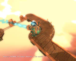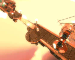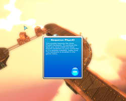CellFactor is a good practical proof of our theoretical assumption that PPU is the quantitative improvement of the existing physical effects in the first place. In 2003 Max Payne 2 was capable of dropping 5 cases from the shelves, now it can do 500 cases simultaneously. The problem is that all this physical debris interferes with gameplay rather than improves it. Yep, explosions and flying shards look great — the first five times. Then you get used to this splendor and... you find out that the gameplay is still on the 1997 level. By the way, what concerns running CF demo without PPU: it hasn't taken some skilled programmers long to find a command line parameter to run the demo without a PPU. We've tried it and got the following results: explosions are noticeably slow without PPU; and when a so-called "sail" gets to the screen (a suspended piece of realistically deforming fabric with triangular holes from shots), fps drops to one-digit values. Thus, CellFactor demo demonstrates that PPU indeed accelerates complex physical effects, based on multiple collisions of many game objects. Now we have to find out whether PPU is capable of more than just quantitative improvements in old effects. SwitchballThe next demo to review is Switchball. This game is a funny puzzle mostly based on physical effects. Full version of Switchball can be bought on the developer's web site. You have to guide a ball through a labyrinth in the air — pushing wooden cases, building bridges over precipices, and cleaning out passages with water throwers. Switchball allows to disable hardware physics in its settings, but an attempt to play the game without it results in the following messages: It looks suspicious: We doubt that computing an unrealistic-looking water jet consisting of large particles (see screenshots of the PPU system) is so heavy a burden for a CPU that you cannot even try it. It seems like a purely marketing decision. Stoked Rider: Big Mountain SnowboardingThe last demo in our today's review is Stoked Rider: Big Mountain Snowboarding.
