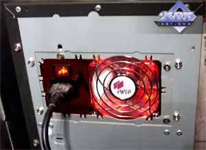 The PSU has two fans: a large fan that sucks the air in from a PC case and a small fan - to drive the hot air out.