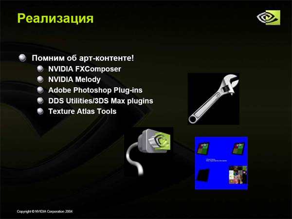The cooperation grows closer at the implementation stage, NVIDIA developed an entire set of tools, which can help programmers in their work. One should say that a new version of NVIDIA SDK will be released on one of these days, which is an important milestone for the whole department as well as for cooperation with game developers. Much has been already said about NVIDIA Cg, it's a specific area of expertise, but what is most important is that this tool is universal. It helps with content building independent of API as well as with importing 3D objects, modeled in well-known packages, into the development environment. ![]() ![]() ![]() Working on a game