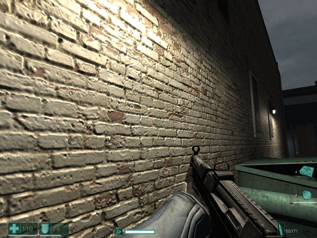 ![]() The last two screenshots illustrate the most obvious examples of parallax mapping in the game. Unfortunately, the game has much less surfaces of this kind than it should have had. They are limited to selected brick walls and holes in the walls. Thanks for that. F.E.A.R. renders shadows from all light sources and for all geometry (maximum quality settings). It uses shadow volumes that have become very popular in recent indoor shooters. Soft shadows from Monolith are implemented using the same shadow volumes. Just several (probably three or four) identical shadows are mixed and post processed to get something like realistic soft shadows.