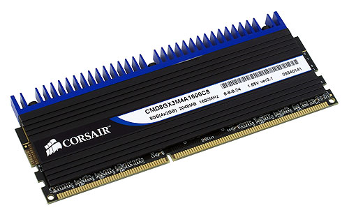 We got the best of 8 GB memory kits from Corsair, namely CMD8GX3M4A1600C8, which can work at 1600 MHz with 8-8-8-24 timings (at the normal voltage level of 1.65 V), equipped with additional fans for better cooling.