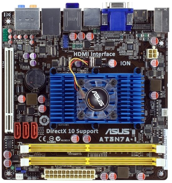 This time we laid our hands on a motherboard from ASUS -- AT3N7A-I with the preinstalled Intel Atom 330 and an active cooling system.