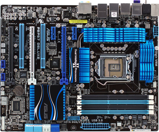 We got the top-end P8P67 Deluxe for review. This quite expensive solution should give you an idea of what the entire series has to offer. It might be not as top-end as the extreme ROG of TUF boards, prices of which are not proportional to functionality. The P8P67 Deluxe is a kind of "regular high-end" solution that you may consider buying, if you actually need all the features it has to offer. If you don't need the second Ethernet controller, additional USB 3.0 headers and some other things, you can save money and go with EVO, Pro or even the budget LE modification. But first let's see what features you'll be losing in that case.