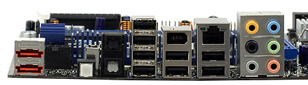 The rear panel is a little different from what we got used to. There are no outdated ports (Abit toyed with it almost 10 years ago). It has nothing to do with the number of USB and eSATA ports either (8 and 2 ports correspondingly are becoming a standard for top motherboards). The first thing you notice is two optical audio jacks (there is no coaxial) and a button. Their functions are described above.