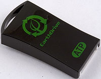 Nobody gets excited about a usual flash drive anymore, so manufacturers invent various contrivances to distinguish their products. However, my cynicism may be inappropriate here, and ATP Electronics really cares for ecological environment, not just for promotion. EarthDrive will certainly please tree huggers for at least three reasons. For one, the package uses recycled materials. Outside the USA and Canada, these products may come in plain boxes made of 'waste' cardboard. For two, part of the income from sales of this model are transferred to non-profit-making American Forests organization, which is into protection and recultivation of forests. Necessity of the latter is a very complex issue, of course. The popular opinion that forests generate oxygen is a delusion. In fact, trees consume more oxygen than they produce, so their contribution into the oxygen balance is purely negative. We breathe only owing to alga in the oceans ;) Whatever, forests are useful, so let them recultivate. Anywhere they like. And the third attraction for environmentalists is the enclosure of the device. Most drives are made of traditional plastic these days, conversion product of oil and other hydrocarbons. They are good, but they take too much time to decompose in nature. When burnt, they poison the atmosphere. Plastic recycling is not the most ecologic process either -- lots of poison appears in the process, and people in this business (headquartered in continental China, what a surprise) statistically live no more than 10 years (from the moment they start working in this industry). Besides, oil itself is considered nonrenewable resource, and its extraction poisons everything living around the field. EarthDrive uses a radically different material: PLA is purely organic plastic made of renewable raw material (for example, it can be produced from corn). When you toss it out, it relatively quickly decomposes to water and carbon dioxide.